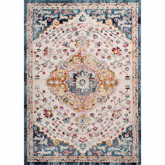 Perzsa Stílusú Virágmintás Szőnyeg – Élénk Színek, Krém Alap