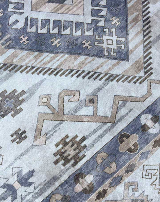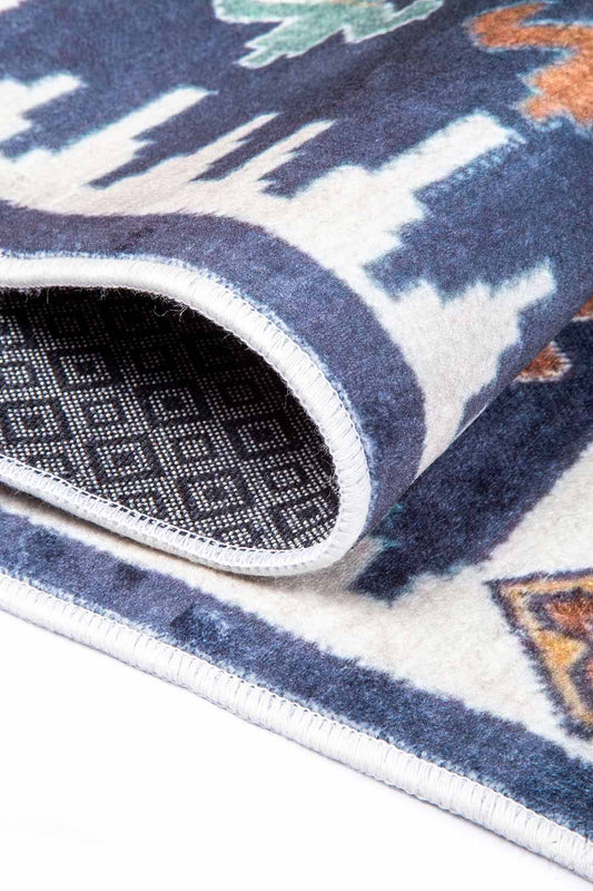Kaukázusi Stílusú Szőnyeg – Sötétkék Alap Geometrikus Mintákkal