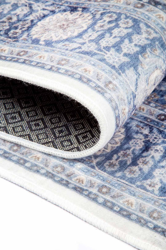 Kék Elegancia – Klasszikus Virágmintás Szőnyeg