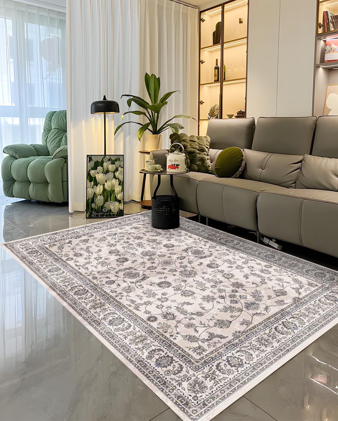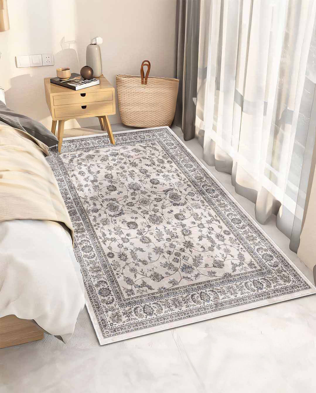 Fokozza otthona dekorációját ezzel a gyönyörű perzsa stílusú szőnyeggel, amely részletes virág mintával, valamint kifinomult elefántcsont és szürke színpalettával rendelkezik. Ez a kiváló minőségű, strapabíró anyagokból készült szőnyeg, egyszerre kínál szépséget és rugalmasságot, így tökéletesen alkalmazható nagy forgalmú helyekre. Időtlen eleganciája könnyedén kiegészíti a hagyományos és a modern belső tereket, melegséget és stílust kölcsönözve minden nappalinak, hálószobának és irodának. Tapasztalja meg a kényelmet és a luxust lábai alatt ezzel a kivételes lakberendezési kiegészítővel. Ideális a kifinomult és hívogató hangulat keltésre bármilyen helyiségben.