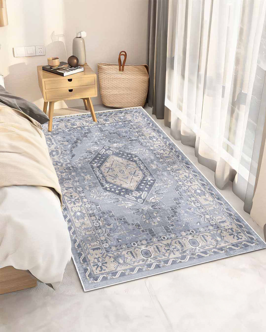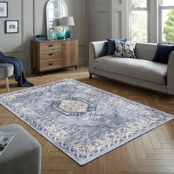 Koka ist ein Vintage-Teppich im neuen persischen Stil mit hellgrauem Teppichhintergrund und einer Mischung aus klassischen Kurven in den angesagtesten und modernsten Farbkombinationen, die leider die Raumgestaltung und den Stil verändern können. Er ist die beste Wahl als Wohnzimmerteppich, als Läufer und Schlafzimmerteppich sowie als Fußmatte. Er ist waschbar und lässt sich leicht reinigen. Genießen Sie die weiche Haptik mit den besten Farben und die rutschfeste Rückseite, die ihn zur besten Wahl für stark und mittelstark beanspruchte Bereiche, kinder- und haustierfreundliche Teppiche und Wohnungen macht.
